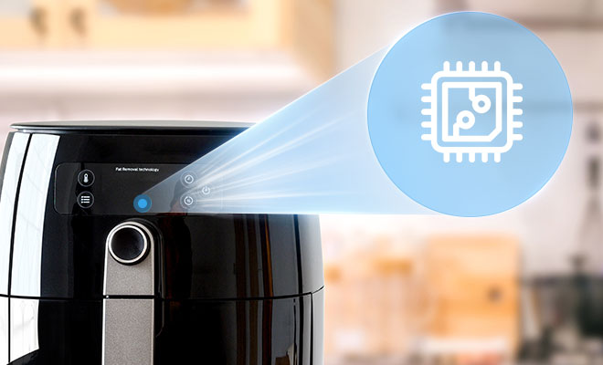 空氣炸鍋智控由主控板、顯示操作界面及TFT 智能旋鈕、WIFI 模組,語音識別,手勢識別模組組成。空氣炸鍋通過以下功能特點讓產(chǎn)品更加智能化,從根本上提升了用戶的便利性和體驗。手機監(jiān)控空氣炸鍋行狀態(tài);手勢識別功能;語音識別功能;TFT LCD 旋鈕屏;