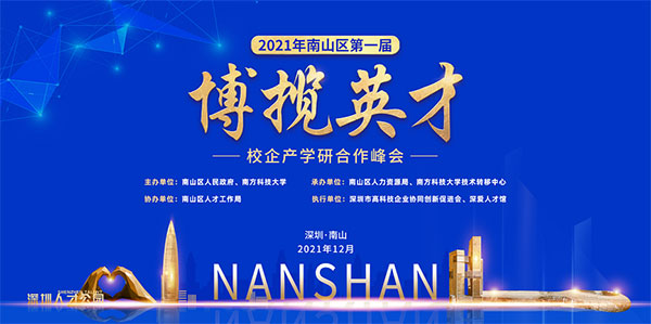2021年12月,由南山區人民政府和南方科技大學合作舉辦的2021年南山區第一屆“博攬英才”校企產學研合作峰會在深圳人才公園求賢閣舉辦。