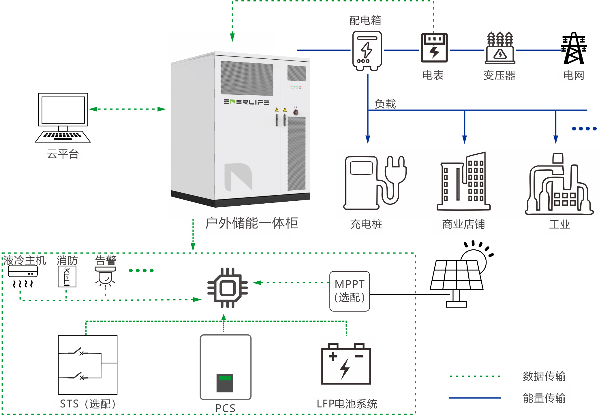 Ener-Cube系列是由和而泰自主研發(fā)設計的工商業(yè)儲能系統(tǒng),儲能電池、集BMS、PCS、EMS、消防、溫控、監(jiān)控、門禁、照明等于一體。采用交直流一體化和即插即用的設計理念,外柜整體結(jié)構簡潔小巧,可靈活選擇吊車安裝以及叉車安裝等多種安裝方式。該系列產(chǎn)品滿足IEC、CE、UN38.3等認證要求,可廣泛應用于工業(yè)園、酒店、商場、充電站、海島等工商業(yè)應用領域